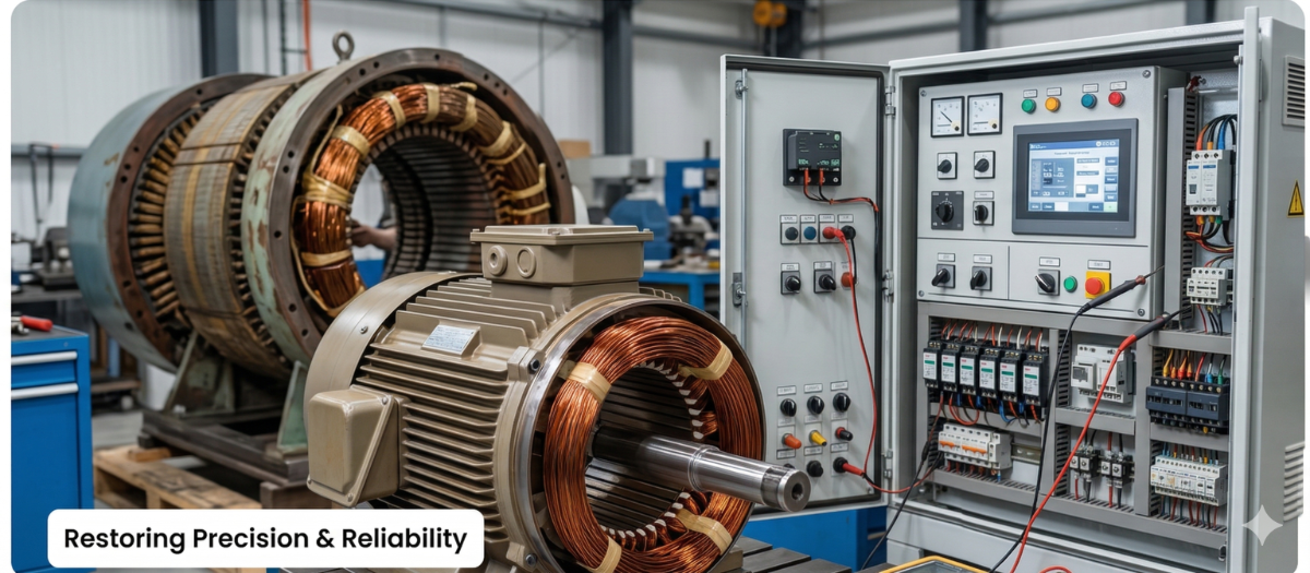Restore power, efficiency, and reliability of critical equipment with our professional rewinding and repair services.